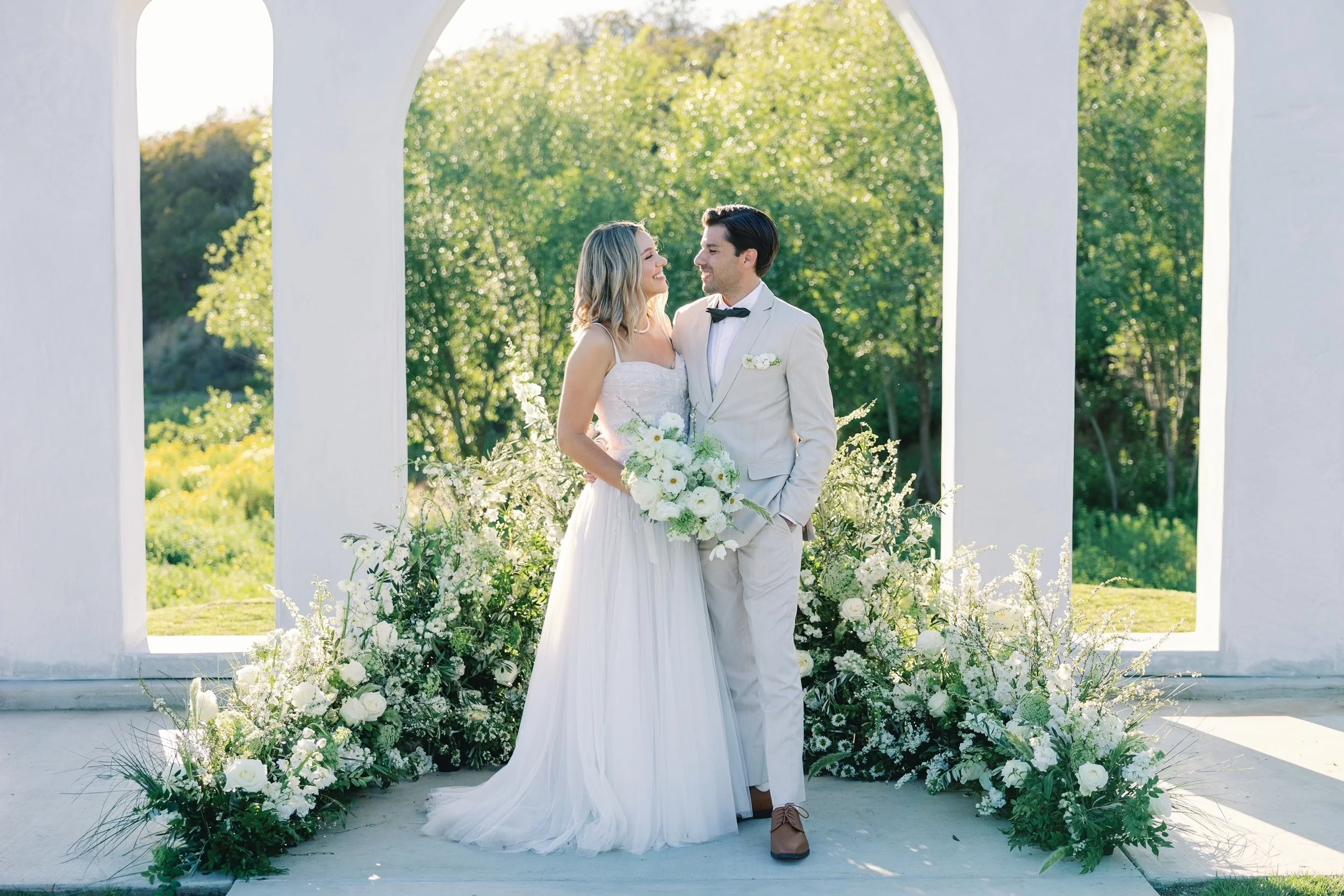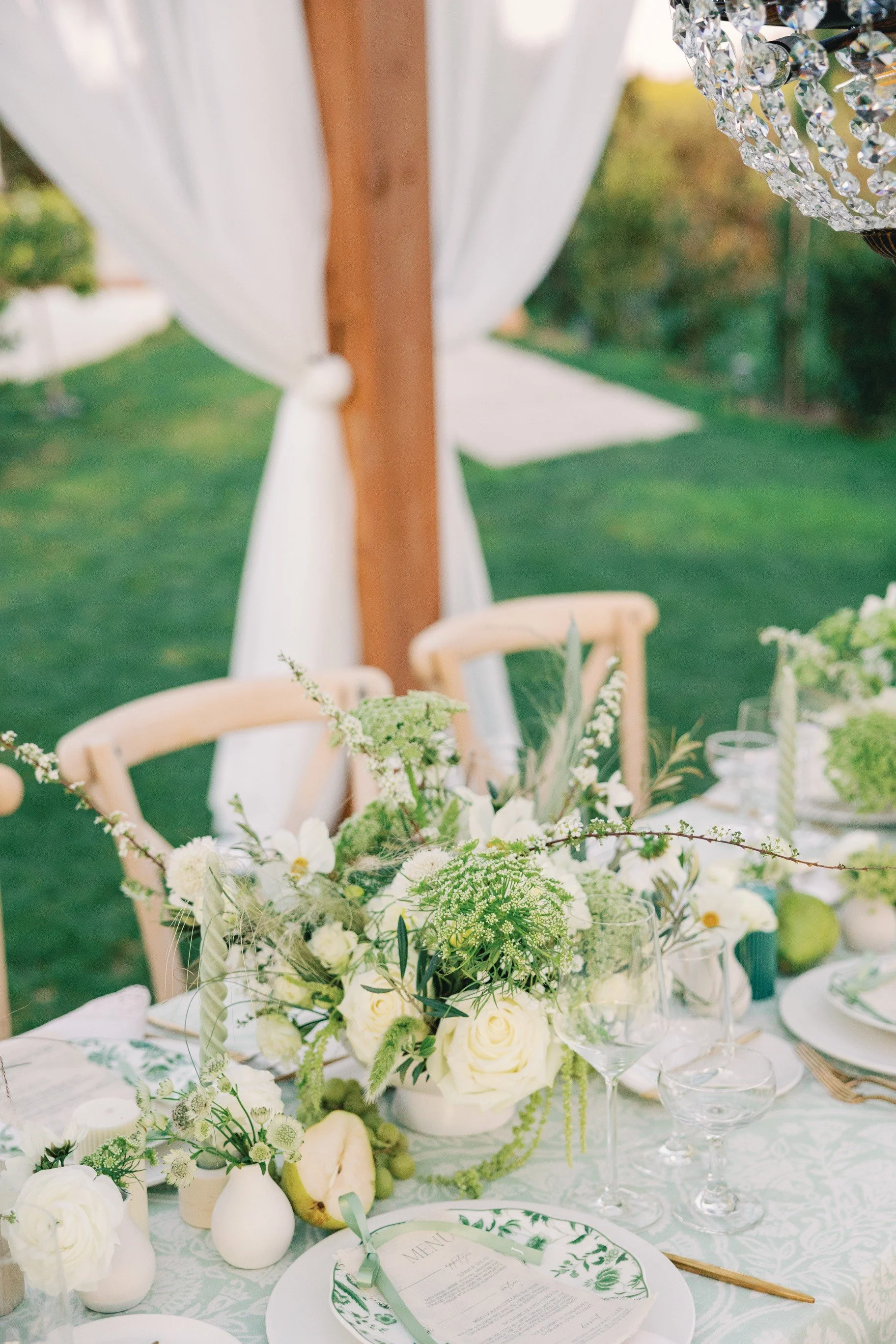 Imagine stepping into a romantic garden wedding where nature’s elegance meets timeless sophistication. This wildflower-inspired wedding was a celebration of organic beauty, designed with a palette of white wedding flowers, soft creams, and lush greens. The ceremony unfolded against a villa-style backdrop, creating a picturesque setting that felt both intimate and grand, perfect for couples seeking a luxury outdoor wedding.